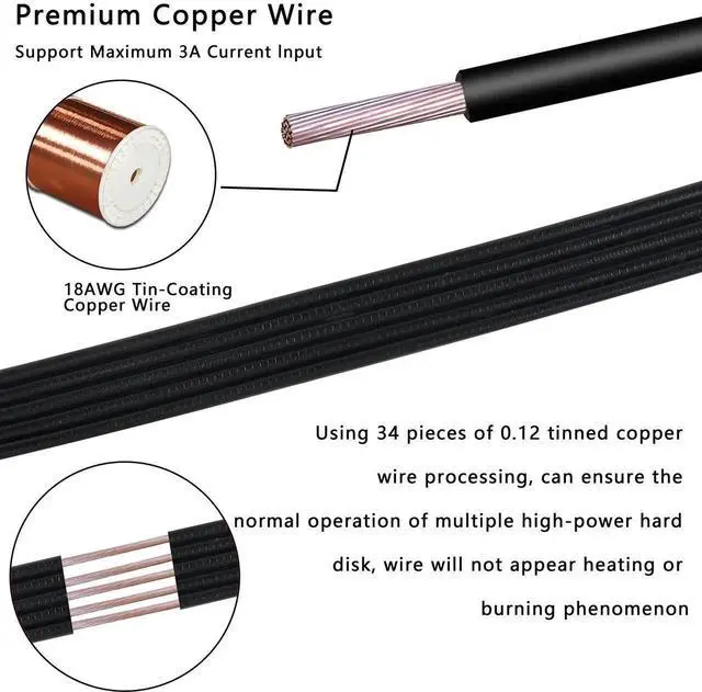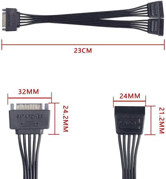 This 15Pin SATA Y power splitter efficiently expands a single SATA power interface to two output ports. The short 22cm body simplifies internal cable management and improves chassis airflow. Made with durable insulated jacket and high conductivity core wire, it delivers safe and stable power output. Easy to plug and install, it is a practical upgrade accessory for multi disk computer assembly, hardware expansion and daily PC modification.