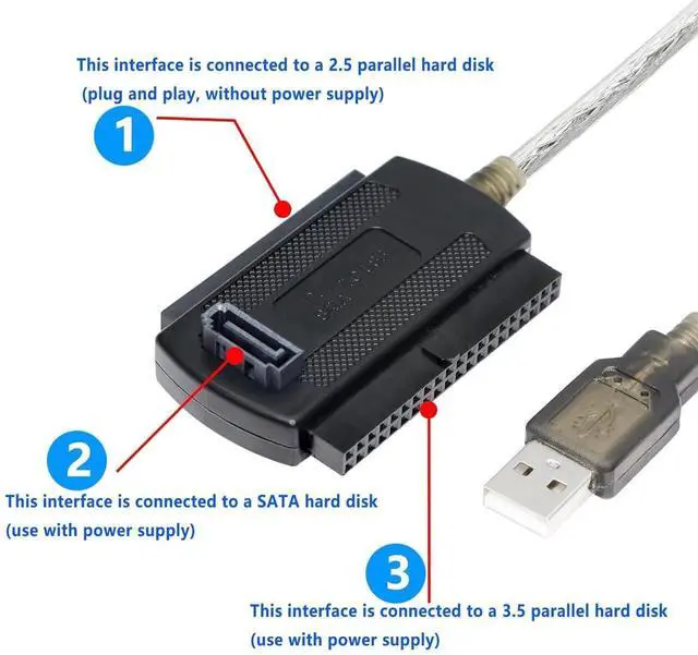 This USB 2.0 to SATA & IDE combo converter connects legacy and modern storage devices directly via USB port. It works perfectly with multiple sizes of IDE and SATA hard drives, optical drives and old internal storage hardware. No complicated driver installation required, easy to use for quick data access and file transfer. Lightweight white cable design saves space and meets daily external expansion and data recovery needs.