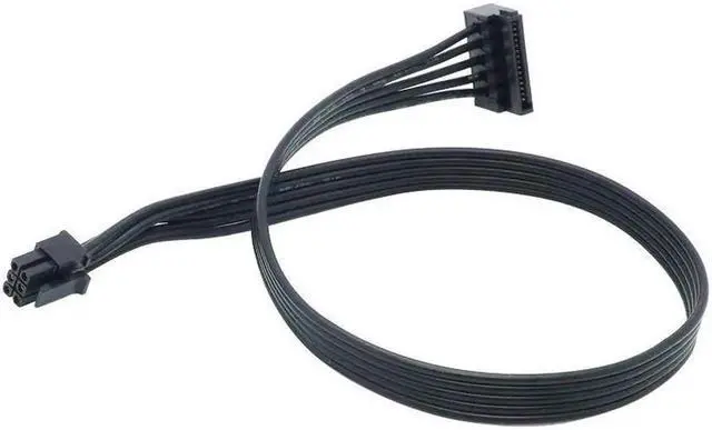 This single sleeved modular power cable is specially designed for Corsair Type 4 modular power units. It adapts the proprietary mini 6Pin interface to common 15Pin SATA power connector, offering steady power supply for storage and peripheral devices. The flexible sleeved cover prevents abrasion and helps organize internal cables neatly. Sturdy molded connectors ensure tight connection without loose or power drop. A practical replacement and modification accessory for custom desktop and workstation builds.