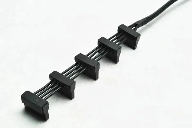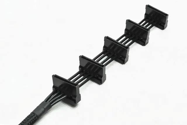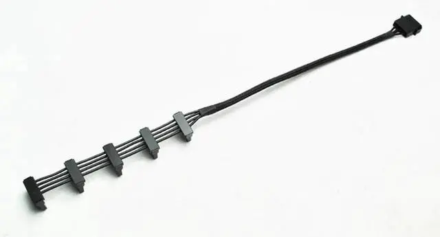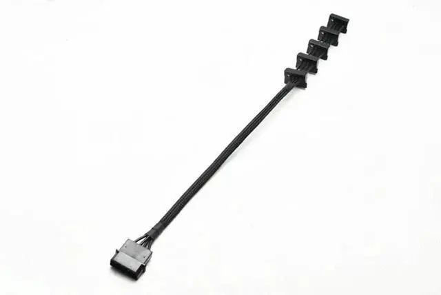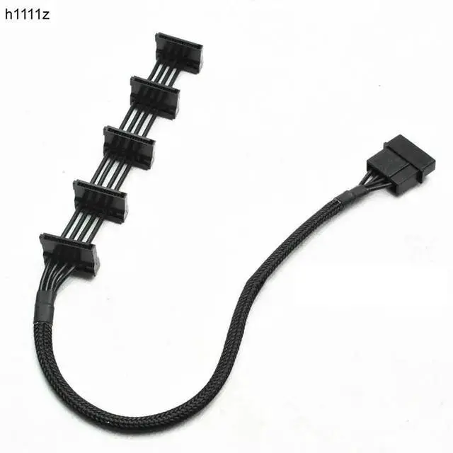 Heavy-duty Molex to 5-port SATA power splitter adopts premium 18AWG copper core for safe and steady power transmission. It makes full use of traditional 4-pin Molex connectors to power multiple SATA devices, perfect for old power supplies without enough native SATA ports. Flexible black cable is easy to install and organize inside cases. Solid molding construction prevents loose contact, ideal for desktop assembly, server renovation and multi-drive expansion.