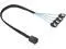 This internal HD Mini SAS breakout cable features an SFF8643 host connector for SAS controllers and four standard SATA target connectors for direct hard drive connection. It enables one Mini SAS HD port to expand four SATA storage devices, efficiently upgrading multi-disk storage capacity.