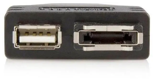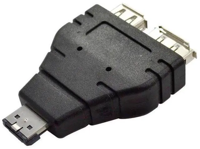 This multifunctional eSATA & USB combo splitter adapter integrates data transmission and power supply in one compact unit. It converts a single eSATA input into separate eSATA data port and USB power port, perfectly solving power shortage and interface matching issues for high-power external storage devices.