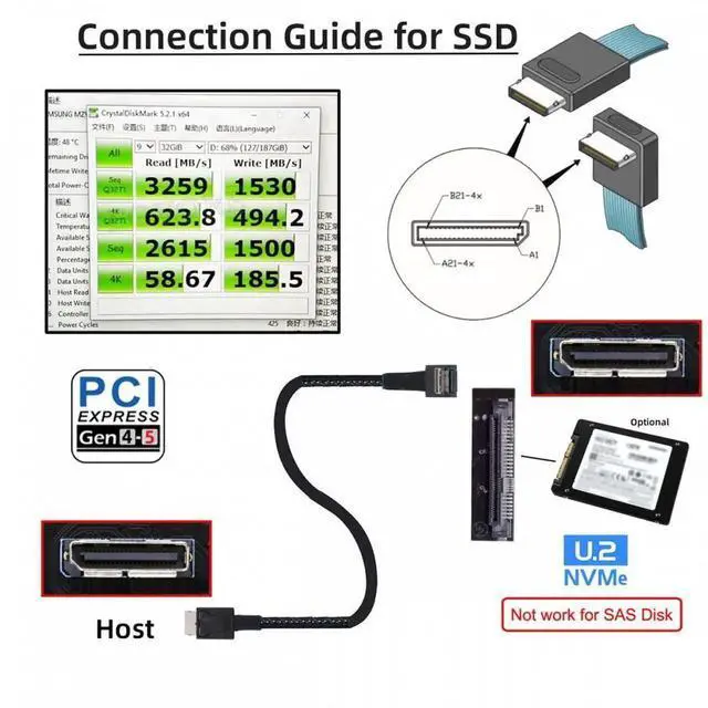 Data transfer rate up to 64Gbps, Transmits PCI Express 4.0 signals using the oculink protocol.