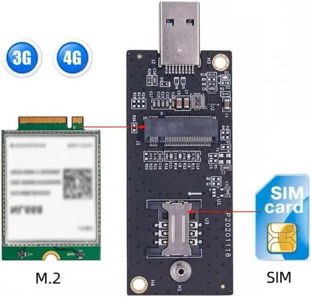 NGFF M. 2 Key-B WWAN to USB 3.0 Adapter Riser Card w SIM Slot For 3G/4G/5G LTE Wireless Module Modem Card