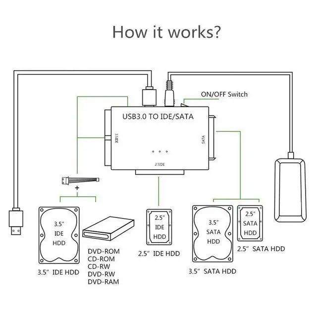 Compatibility: 2.5"/3.5" SATA / 2.5"/3.5" IDE hard drives