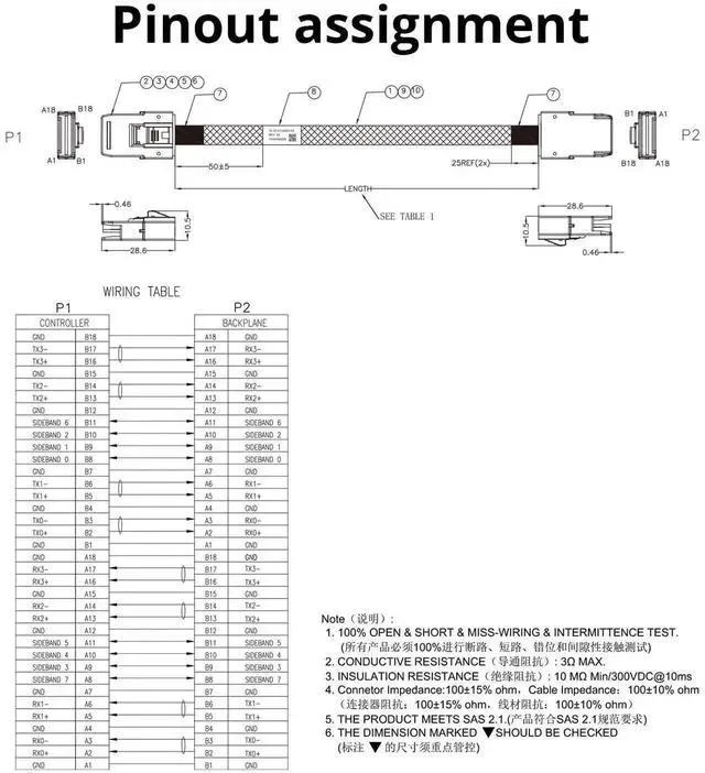 10Gtek Mini Serial Attached SCSI (miniSAS) Internal Cable Assemblies provide for high speed transmission up to 6 Gbps. It is an ideal interconnect solution for the growing server and storage market. MiniSAS are designed to significantly reduce the cable size for storage systems currently using SAS 4-lane (4x or 4-lanes of data) and are being widely adopted for next-generation designs. The 36-position internal miniSAS cable assemblies are available in custom lengths of up to one meter. They are also available in three standard sideband configurations. Customized sideband configurations are available upon request.Specification: Mini SAS SFF-8087 to Mini SAS SFF-8087 (36Pin) Length: 0.5-Meter(1.6ft), AWG 30 Impedance = 100 Ohms Up to 6.0Gbps data rates High-bandwidth, Low-skew cable Temperature range: -20-80 RoHS Compliant Application: Servers RAID systems Storage systems SAS/SATA HBA interfaces Direct-attached storage (DAS)