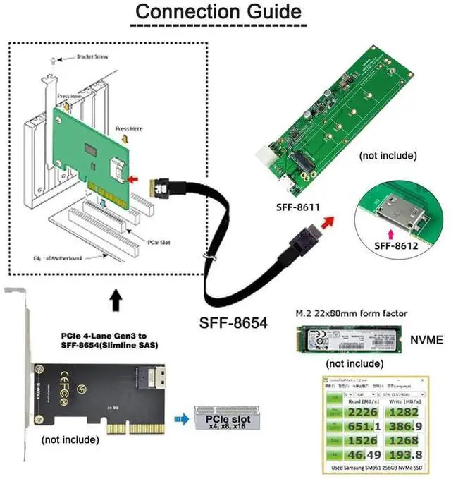 OCuLink SFF-8611 male to SFF-8654 male