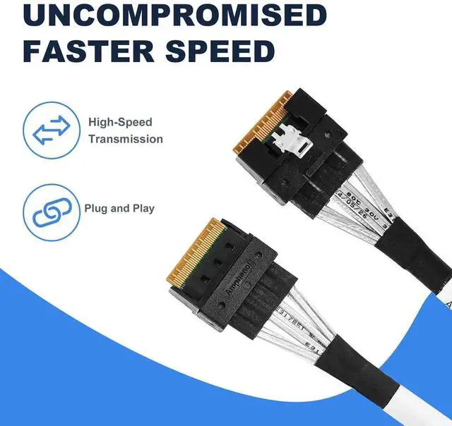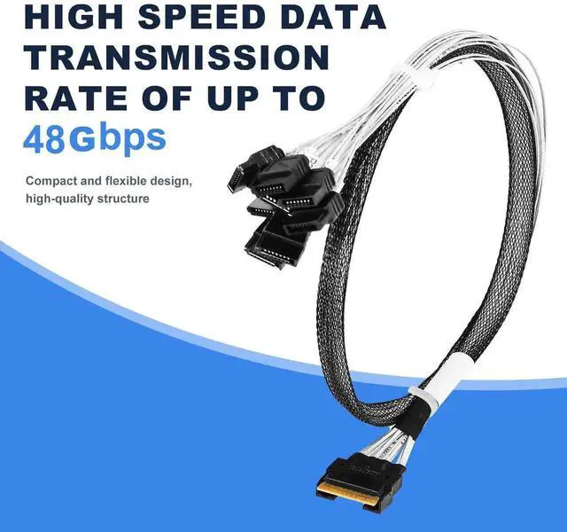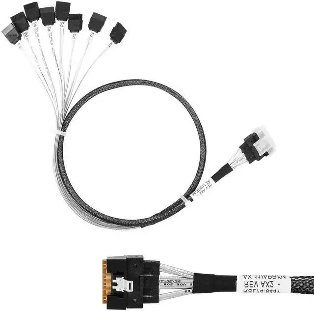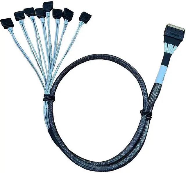This SAS cable can be used to connect internal devices, e.g. a hard disk with SATA 7pin connector to a controller with Slim SAS SFF-8654 8X connector. Ultraport SlimSAS 8X 74Pos Cable Assembly. SlimSAS 8X Straight to SATA 7pin. Length: 80cm. Connector 1: Slim SAS 8X 74pin. Connector 2: SATA 7pin. Applications for Servers,Data Storage,Workstation. meet PCIe Gen3 and SAS4.0 specification.