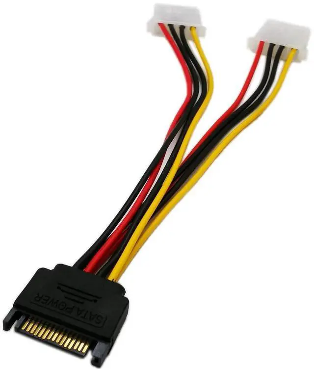 JAENFONG 6 Inch Sata 15-Pin Male to Dual 4 Pin Molex Lp4 Female IDE Hard Drive Power Y-Adapter Converter Cable,Male to Female for 12V/5V IDE HDD DVD