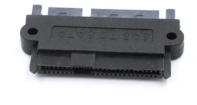 The SFF-8482 is a 29-pin connector with a plastic body, and configured with 15 pins that support the power requirements of the drive, and (2) groups of 7 pins that carry the SAS data signals.