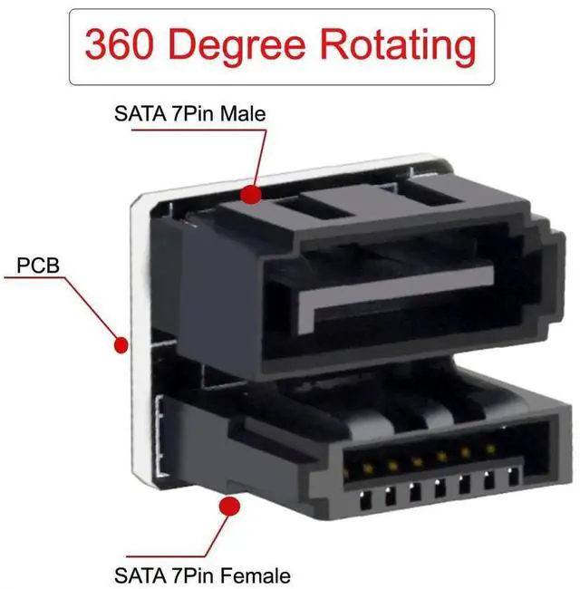 • SATA 7Pin Female to 7Pin Male 360 Degree Angled Adapter Single Port for Desktops SSD HDD Mainboard Motherboard