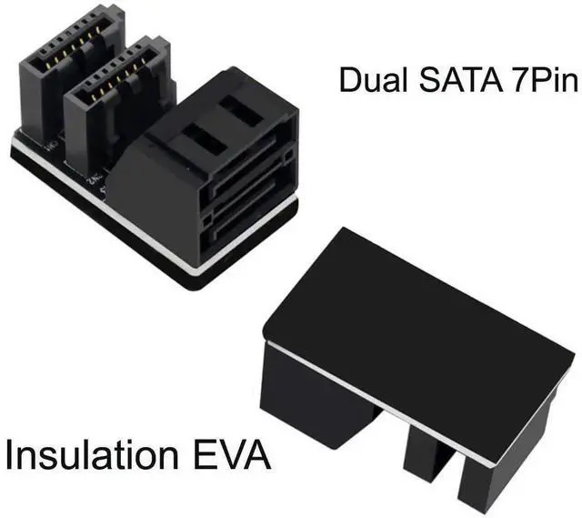 • SATA 7Pin Female to 7Pin Male Vertical 90 Degree Angled Adapter Dual Port Low Profile for Desktops SSD HDD Mainboard Motherboard