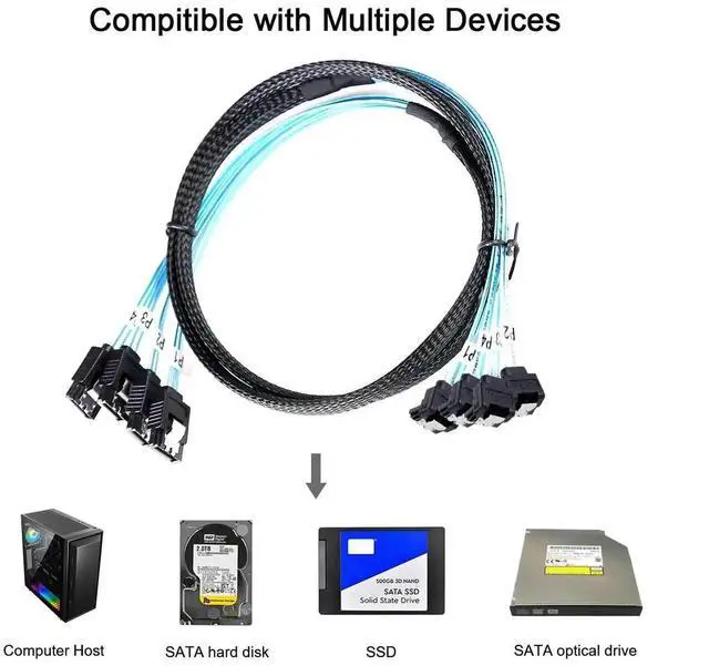 Serial ata cable/SAS cable Surport up to 6Gbps Data transfer rates, quickly upgrading your computer for expanded storage, backwards compatible with SATA I and SATA II hard drives, the flexible sata cable bundle cables data transfer speed is limited by rating of the attached equipment