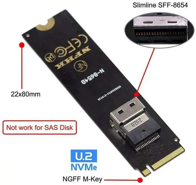 • NGFF M-Key NVME to U.2 U2 Kit SFF-8639 to SFF-8654 Slimline SAS PCIe SSD Adapter for Mainboard