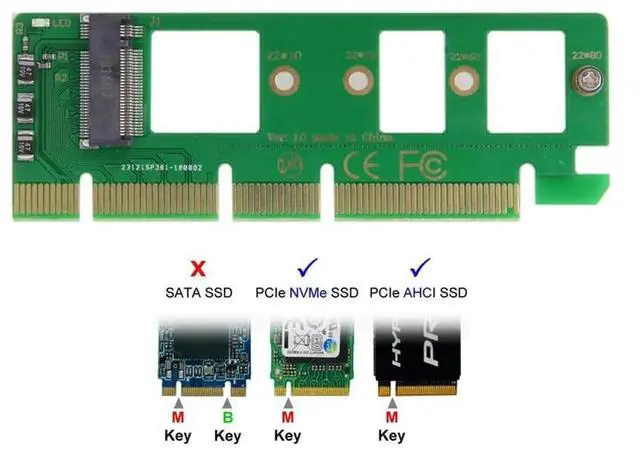 • M key M.2 NGFF SSD to PCIe X4 adapter.The speed and other properties is not changed,only form conversion interface