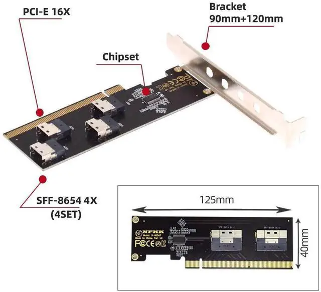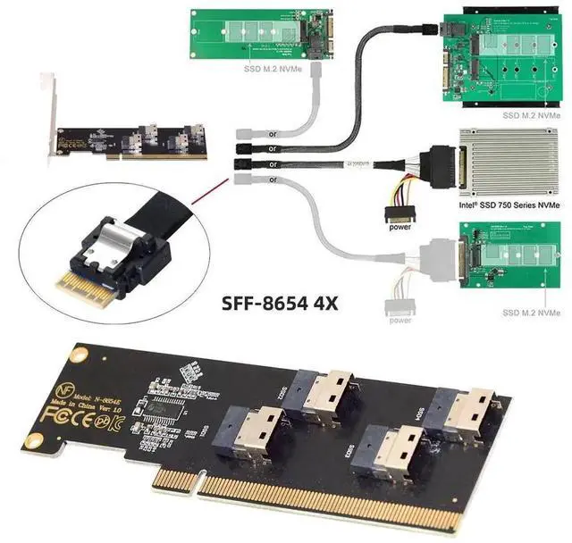 Four Slimline SFF-8654 4X design, Stable installation, Can run 4 PCIE disks at full speed at the same time.