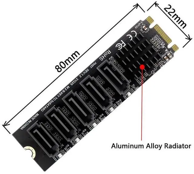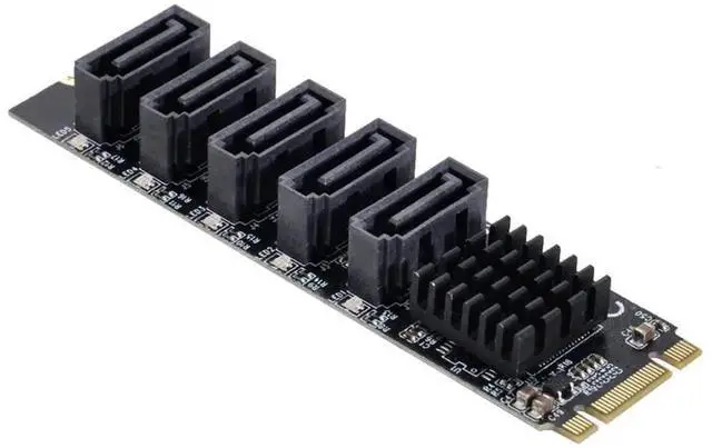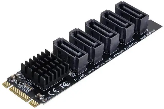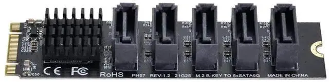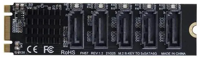 NGFF Key B+M to SATA 3.0 6Gbps 5 Ports Adapter Converter Port Select JMB575 JMB575 is a single chip solution. It integrated 5 independent SATA channels and a micro-processor.