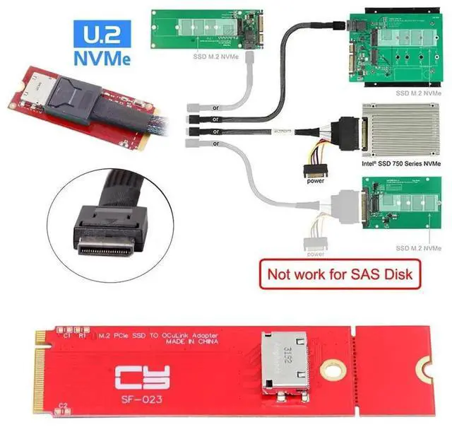 • PCI-E 3.0 M.2 M-key to Oculink SFF-8612 SFF-8611 Host Adapter for PCIe Nvme SSD This convertor expands the system by one SFF-8612 interface.