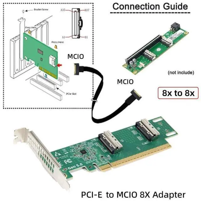 One detachable PCIE PCI-Express 8x motherboard can be connected,The converter can be installed into the system internally through the MCIO interface.
