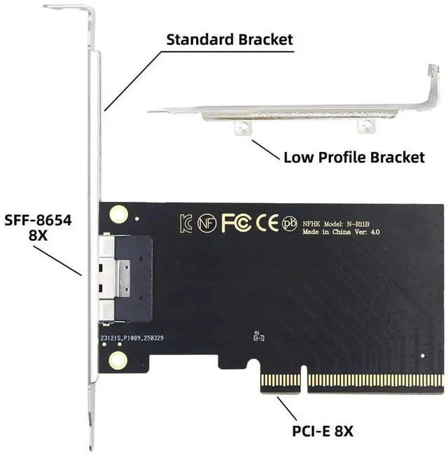One detachable PCIE PCI-Express 8x motherboard can be connected,The converter can be installed into the system internally through the SFF-8654 interface.