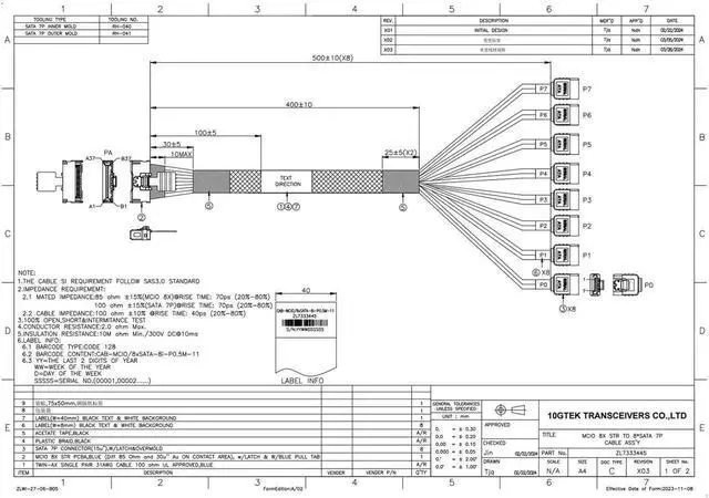 Side 1: MCIO SFF-TA-1016 8X 74Pin; Side 2: 8x SATA 7Pin