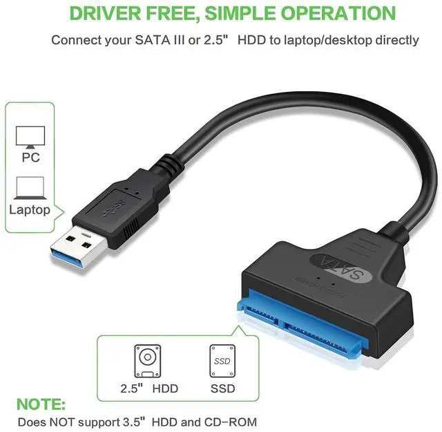 EASY TO USE: SATA to USB 3.0 adapter Hot-swappable, plug & play, no drivers needed. For a 2.5" drive, there is no need for an additional power supply. An LED light indicates Power and Activity status. The cable length is only about 8 inches, which is good enough for cloning a laptop hard disk drive to an SSD