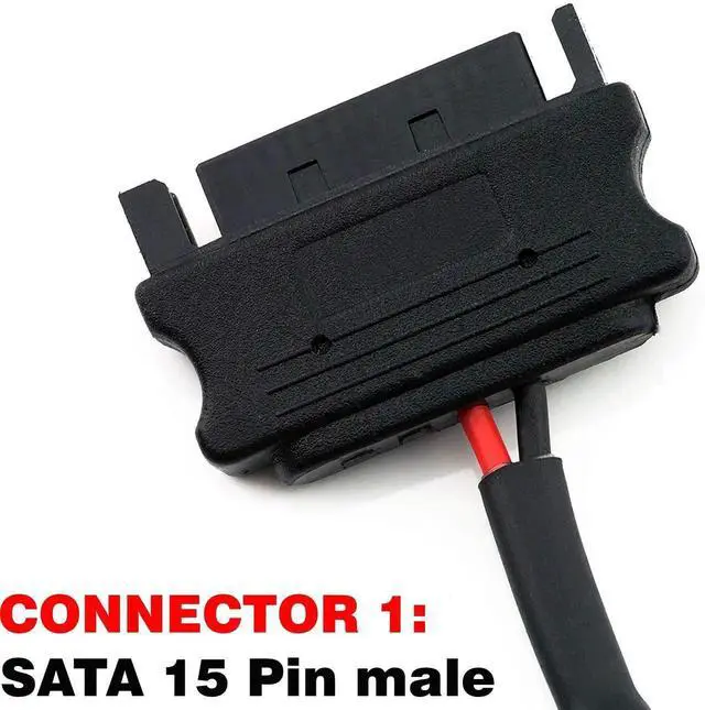 3. Converts one 15 Pin SATA plug into SATA Slimline 6-Pin Female Power connector