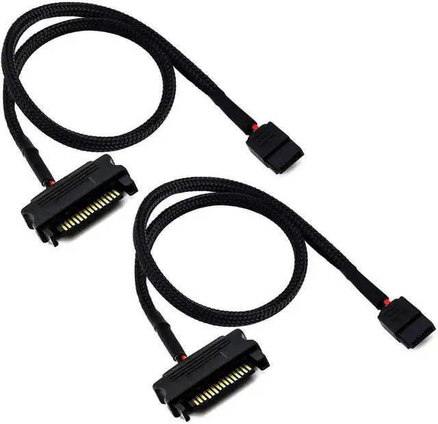 SATA Power Adapter Cable 15-Pin Male to SATA 6-Pin Slimline Sleeved Power Adapter Cable 20 Inches (2 Pack)