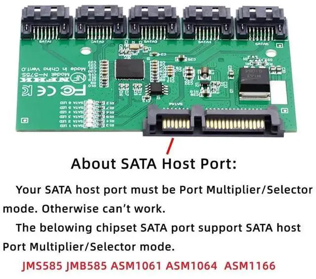 The belowing chipset SATA port can be supported: JMS582 JMB585 ASM1061 ASM1064 ASM1166.