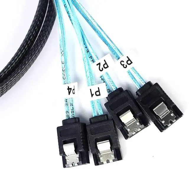 SATA Cable Striahgt to Right Angle build with high quality 30 AWG raw thin sata server cable, nylon braided sata cables put 4 pcs sata cables together