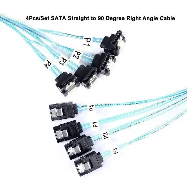 4PCS/set SATA III Cables, SATA Cable Striahgt to 90 Degree design, SATA 7 Pin to SATA 7 Pin Hard Drive Data Cable Use for connection the multichannel Removable HDD in server case, bitcoin computer or other sata 7pin devices