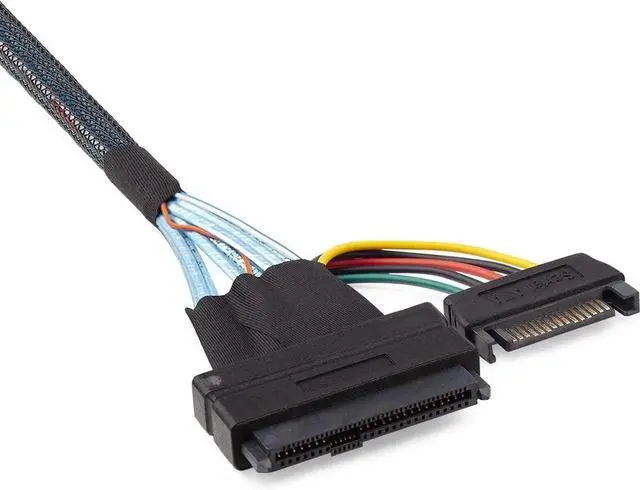 Mini SAS SFF-8643 to U.2 SFF-8639 Cable, PCIe 4.0 X4 85 Ohm with 15-Pin SATA Power for NVMe SSD Hot-Swap, 0.5m/1.6ft