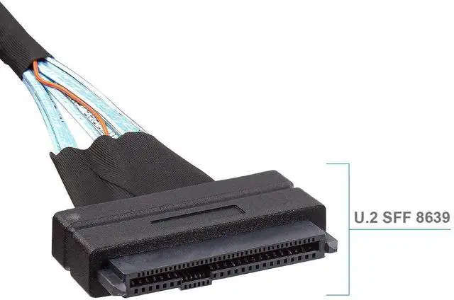 Mini SAS SFF-8643 to U.2 SFF-8639 Cable is particularly designed to connect a PCIe slot with an SFF-8643 port and an SSD with a U.2 interface