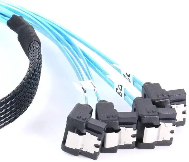 SATA Cable Striahgt to Right Angle build with high quality 30 AWG raw thin sata server cable, nylon braided sata cables put 4 pcs sata cables together