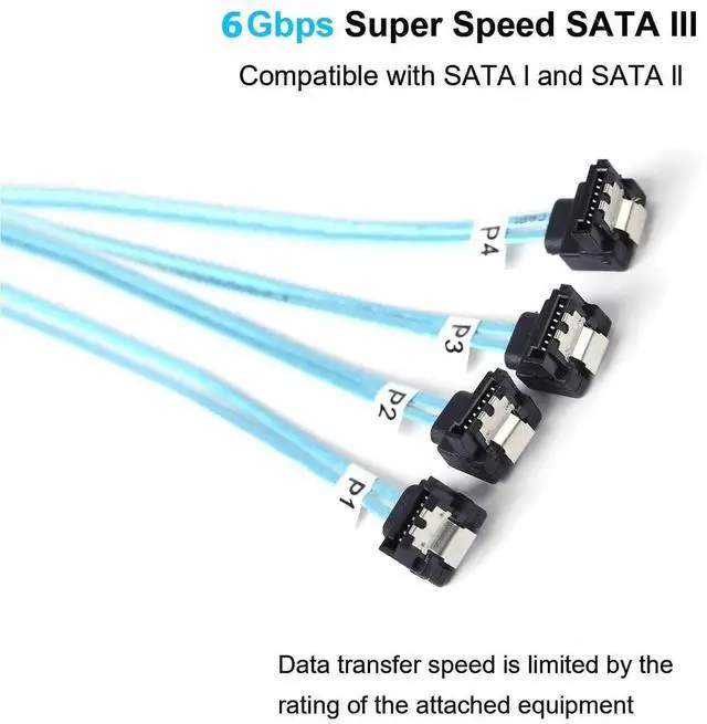 4PCS/set SATA III Cables, SATA Cable Striahgt to 90 Degree design, SATA 7 Pin to SATA 7 Pin Hard Drive Data Cable Use for connection the multichannel Removable HDD in server case, bitcoin computer or other sata 7pin devices