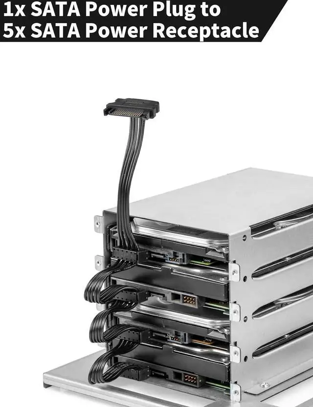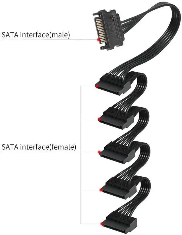 Important Compatibility NoteThis splitter features 1x 15-pin SATA male and 5x 15-pin SATA female connectors, specifically designed for devices with SATA ports. It is not compatible with other port types; connecting to incompatible devices may lead to component damage. Please verify your device' s port compatibility before purchasing or feel free to reach out to us for assistance.