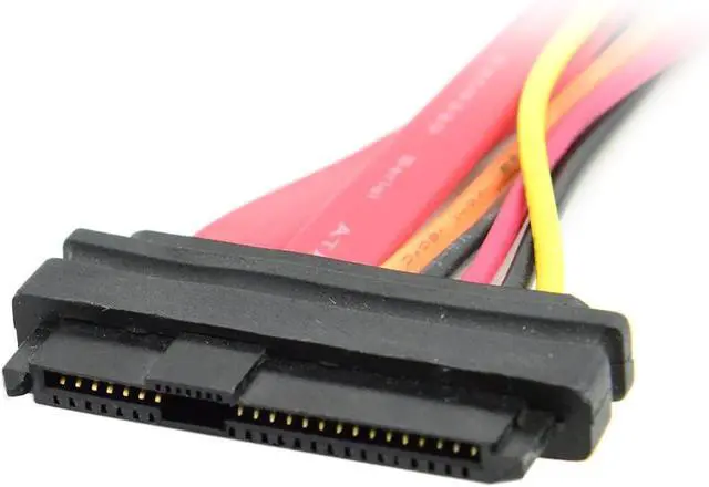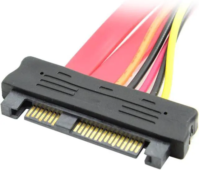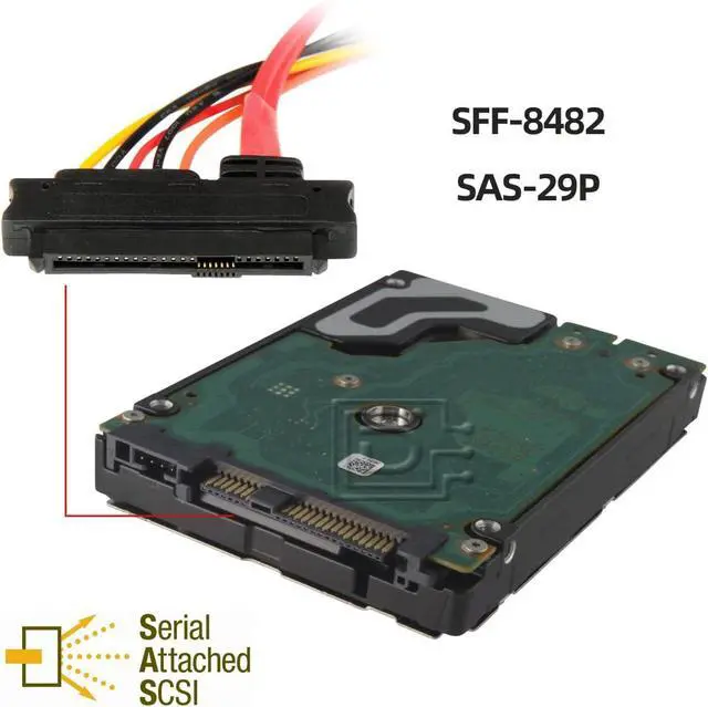 The SFF-8482 is a 29-pin connector with a plastic body, and configured with 15 pins that support the power requirements of the drive, and (2) groups of 7 pins that carry the SAS data signals. The SFF-8482 supports 2 SAS ports (lanes) to/from the drive.