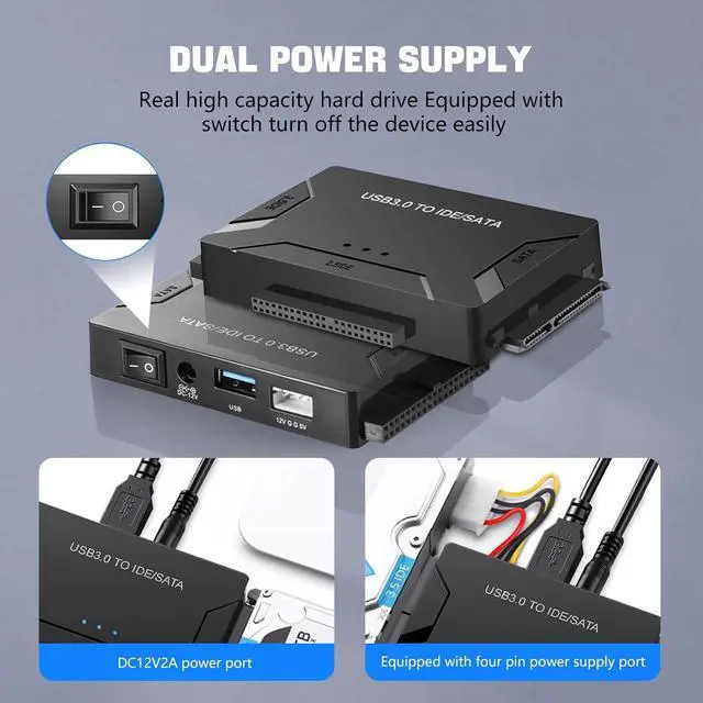 All-in-One IDE/SATA to USB Converter This versatile adapter is designed to connect 3.5 " / 2.5 " HDD/SSD drives to laptops or desktops, enabling seamless data transfer, backup, and cross-device cloning. It offers robust storage expansion and file protection for critical data, ideal for migrating or archiving large files.