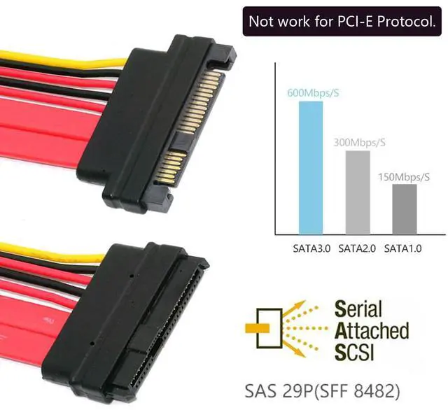 1) ChenYang SFF-8482 Extension Cable SAS 29Pin SFF-8482 Male to SFF-8482 Female Hard Disk Drive Extension Cable 0.5 m.