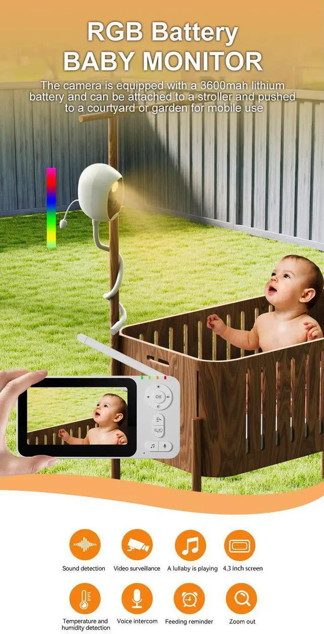 The camera is equipped with a 3600mah lithiumbattery and can be attached to a stroller and pushedto a courtyard or garden for mobile use
