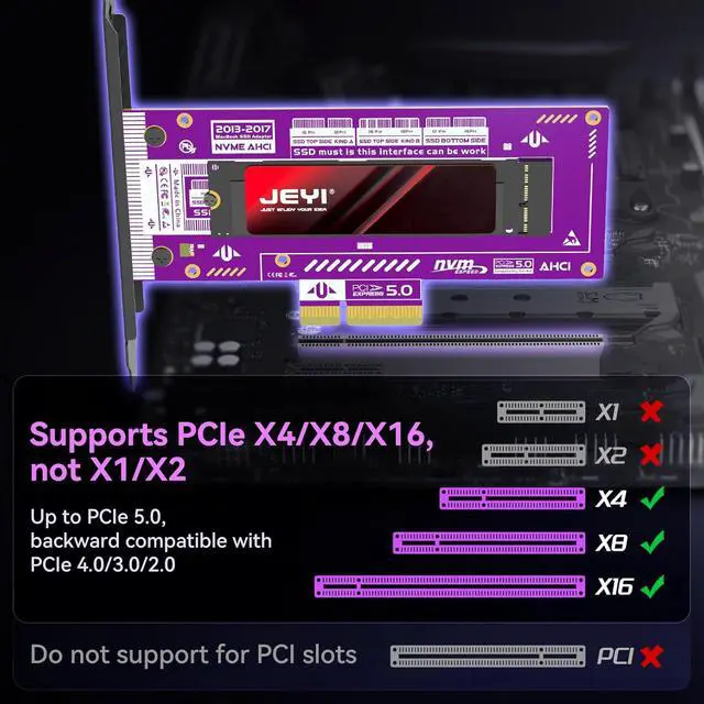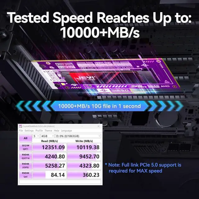 PCIE Gen5 Ultra SpeedSupports PCle 5.0 with 128Gbps bandwidth, backward compatible with PCle 4.0/3.0/2.0.Note:Full link PCle 5.0 support isrequired for MAX speed.