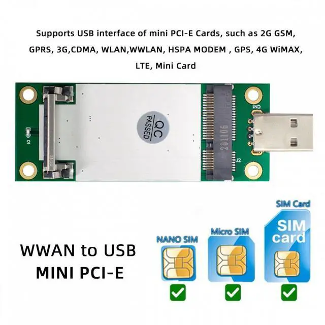 Mini PCI-E Wireless WWAN to USB Adapter Card with SIM Card Slot Module Testing Tools
