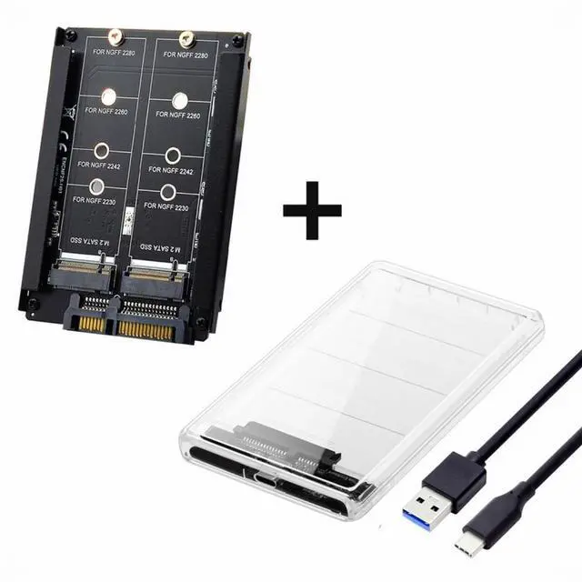Dual NGFF B+M-Key M.2 SSD Card JBOD Raid0 Span Bridge to USB3.0 Type-C USB-C 2.5inch SATA Combo Enclosure