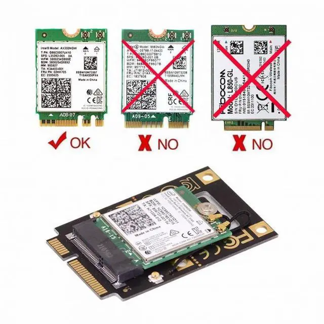 Note: Only support KEY A or KEY A+E to PCI-E(The single Key E interface can't be used),Not fit SSD ,3G/4G module card