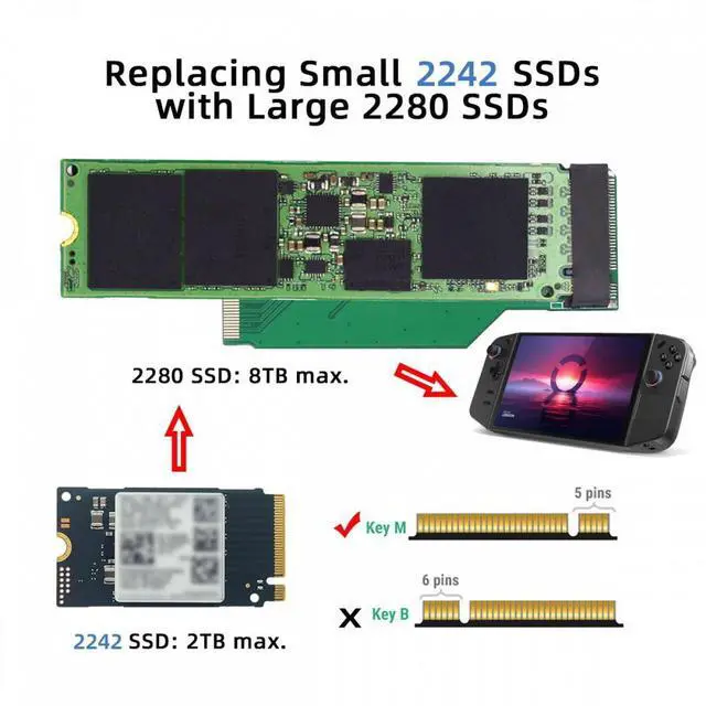 NGFF NVME M-Key 22x42mm to 22x80mm Male to Female Extension SSD Adapter Compatible with Legion Go Game Boy
