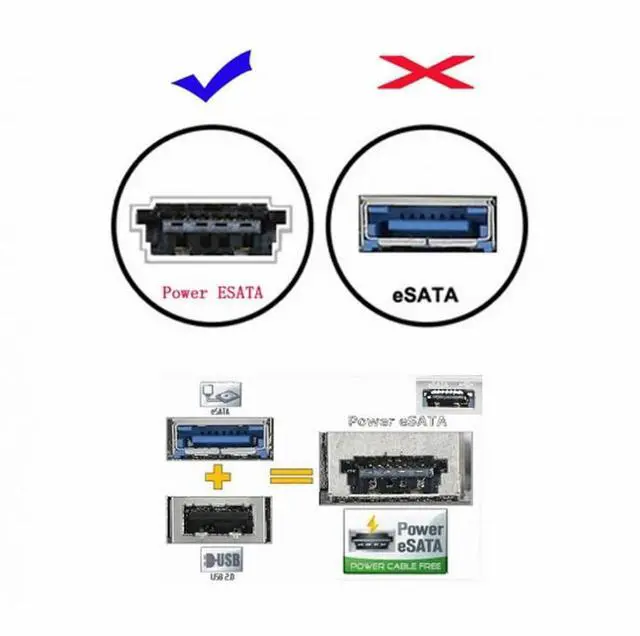 • Connection: Power Over eSATA (eSATAp) to SATA 22 pin