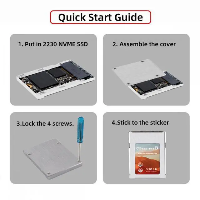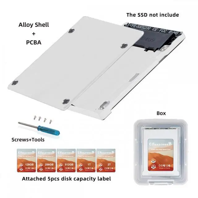 • There is no SSD or capacity inside,You need to put in the 2230mm SSD yourself, Bus Interface: NVMe PCIe Gen3x2, Form Factor CFexpress Type B.