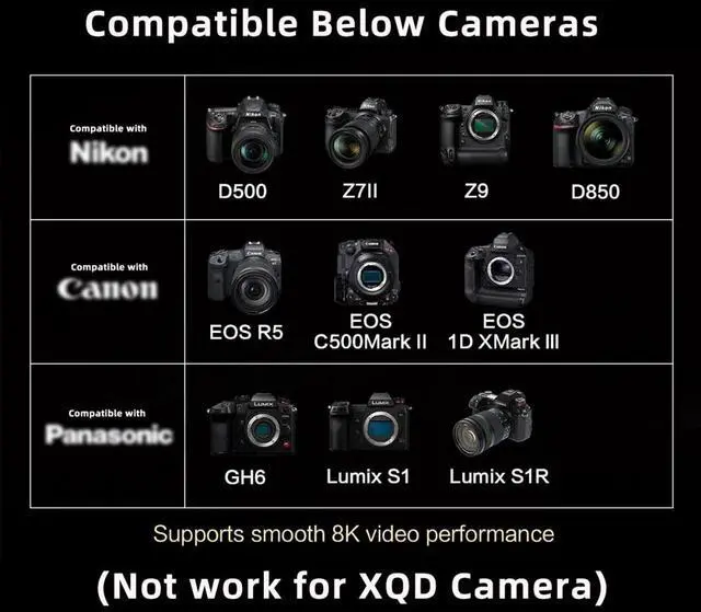 Designed for next-gen video/photo cameras such as DSLR, cinema, and mirrorless cameras,Enables smooth, RAW 4K/8K video support. Captures flawless RAW videos and photos in breathtaking 8K Ultra HD resolution.
