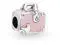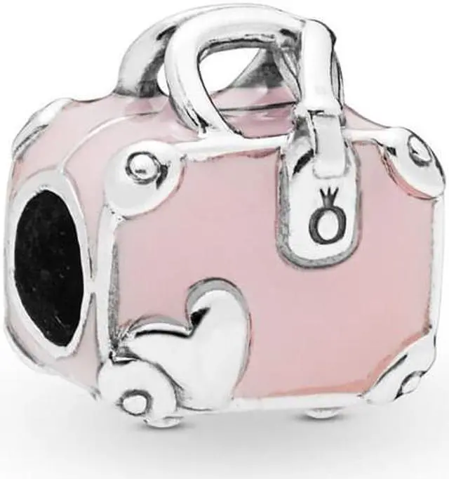 This pretty pink enamel and sterling silver suitcase charm is part of our series of travel charms. Detailed at the corners as well as on its luggage tag with the Pandora crown O and featuring pretty hearts the cute case is inscribed with the words Love travels. Take it with you on your next adventure: on a bracelet or even as an alternative to a necklace pendant.