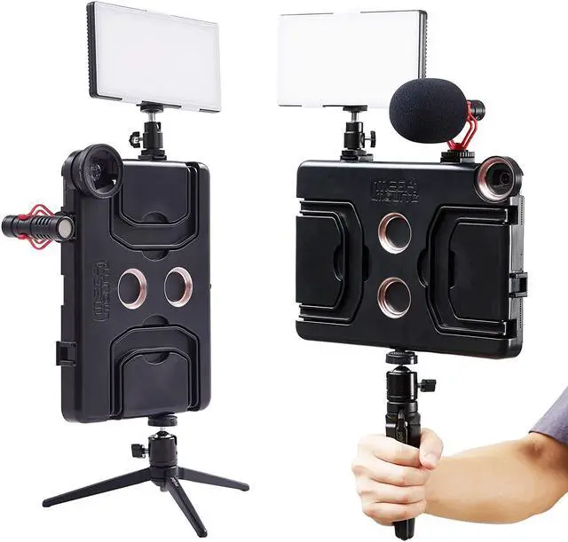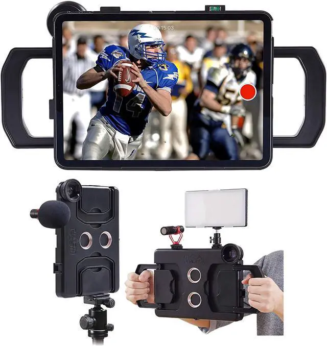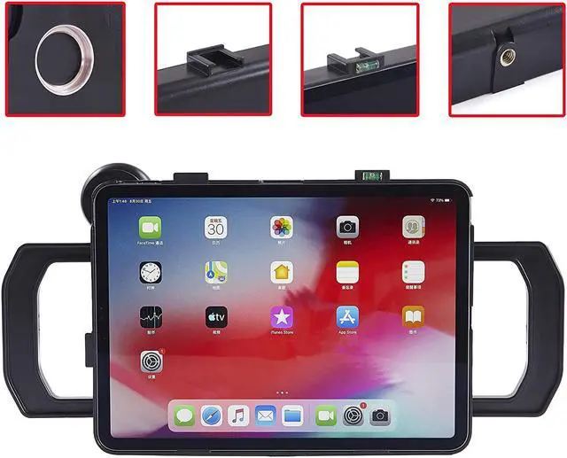 - THREE COLD SHOW MOUNTS are provided for attaching video lights, microphones, and other accessories. BUBBLE LEVEL assists with positioning and keeping the tablet horizontally even during recordings.